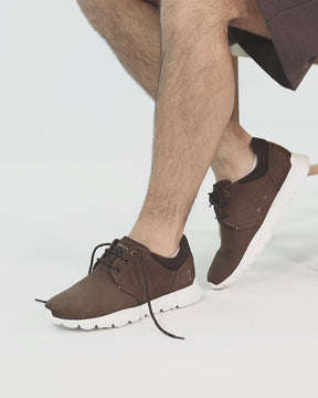 Men's sneakers. WATERPROOF Brown Nobuck Leather. Lace-up Closure. Leather lining. Removable anatomical insole. Lightweight, flexible and strong EVA rubber sole. Heel height: 5 cm. 100% Made in Spain.