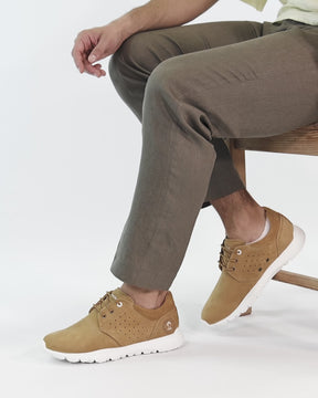 Men's sneakers. WATERPROOF Ochre Nobuck Leather. Lace-up Closure. Leather lining. Removable anatomical insole. Lightweight, flexible and strong EVA rubber sole. Heel height: 5 cm. 100% Made in Spain.